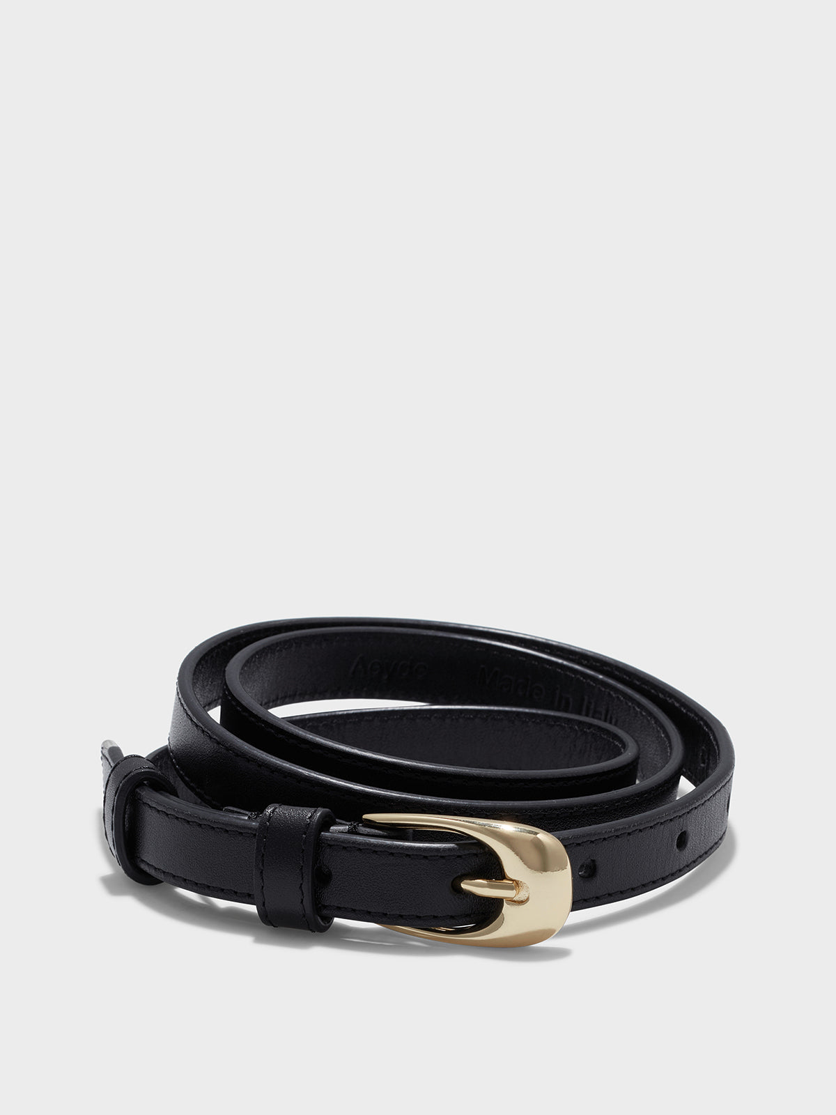 Aeyde Women’s Eleanor Leather Belt | Black & Gold Calf