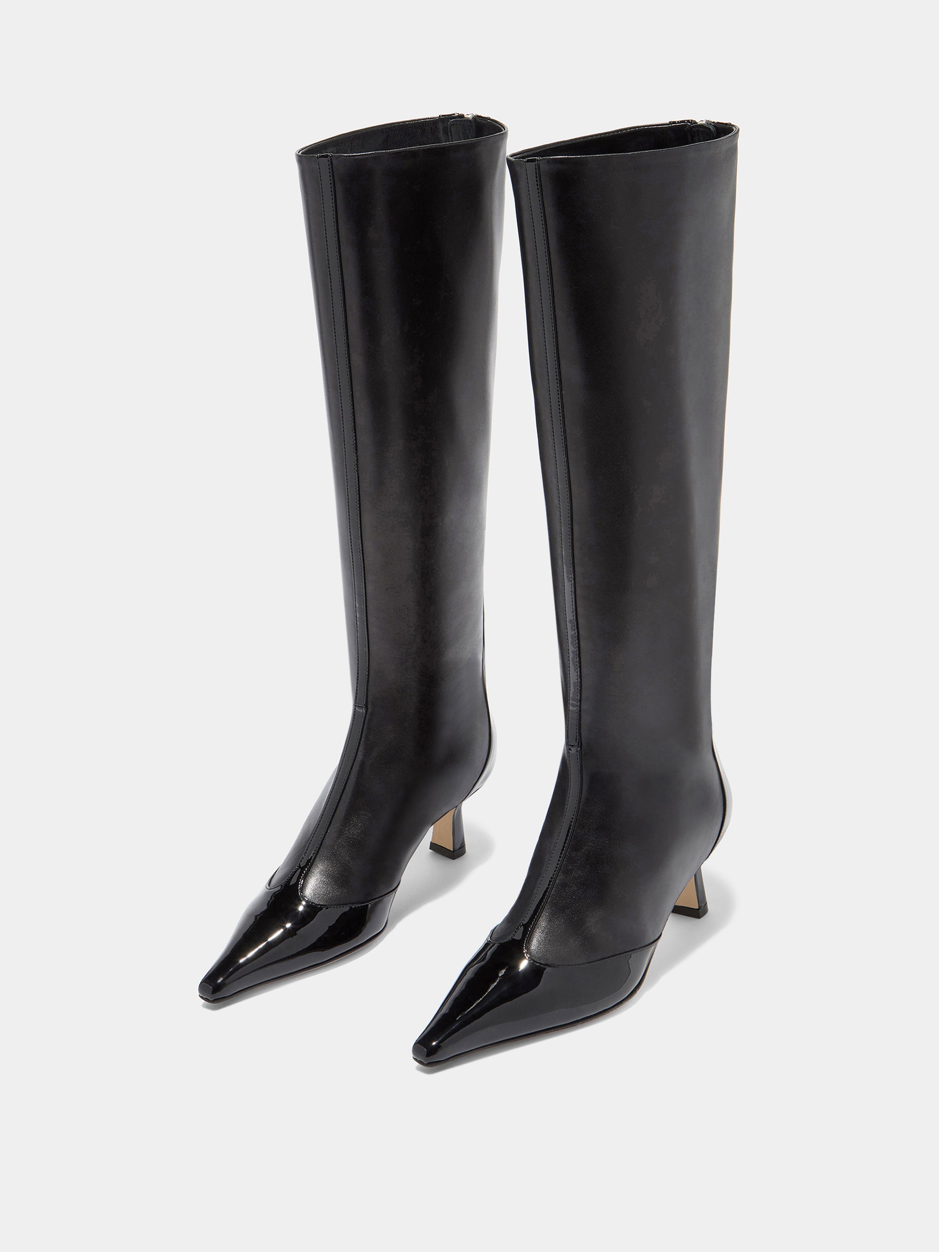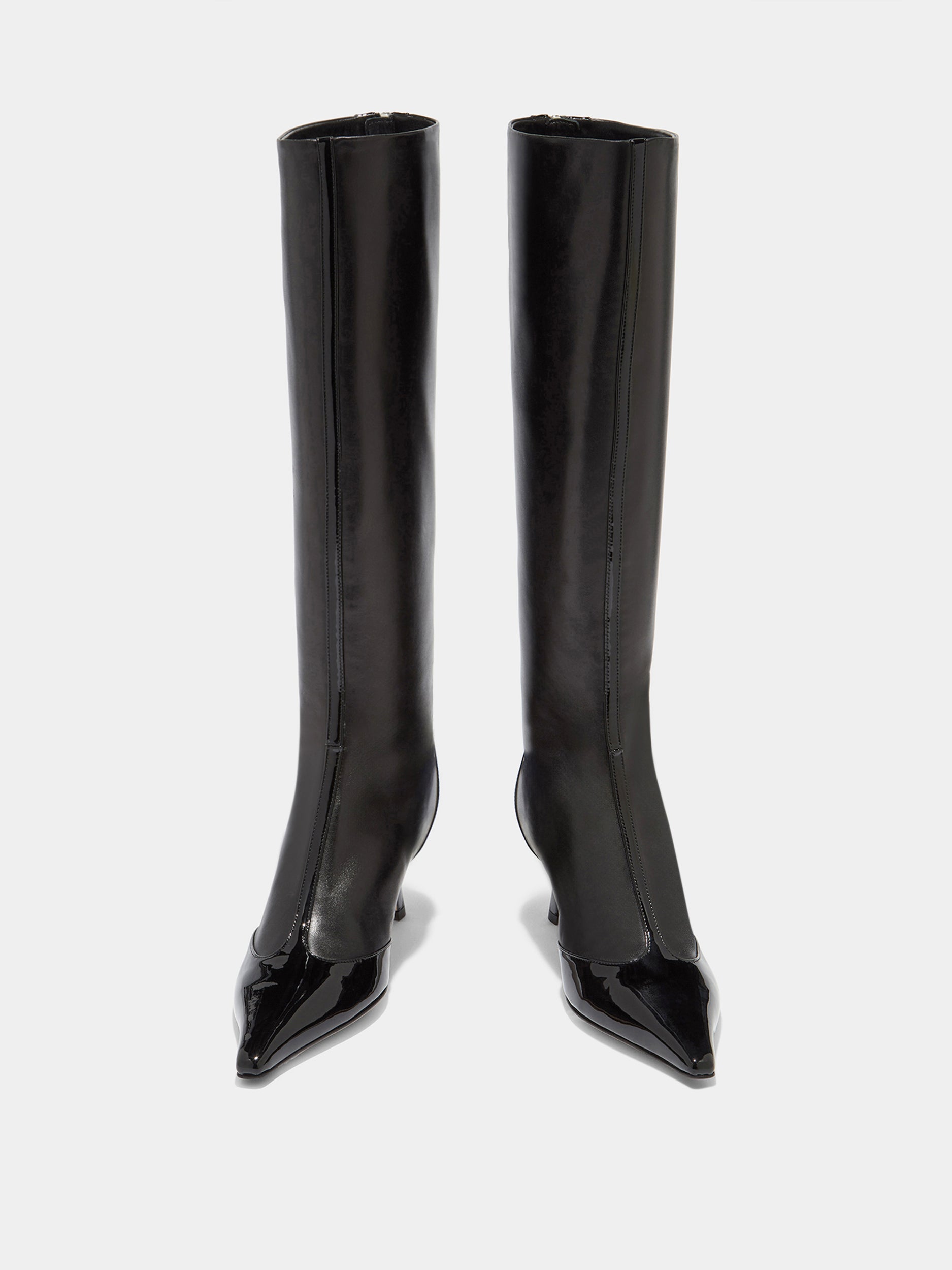 Inside Material: 100% Cross Breed Lamb Leather Outside Material: 80% Nappa Leather / 20% Patent Calf Leather Heel Height: 3.5 CMCalf Circumference: 38 CMShaft Height: 40 CM