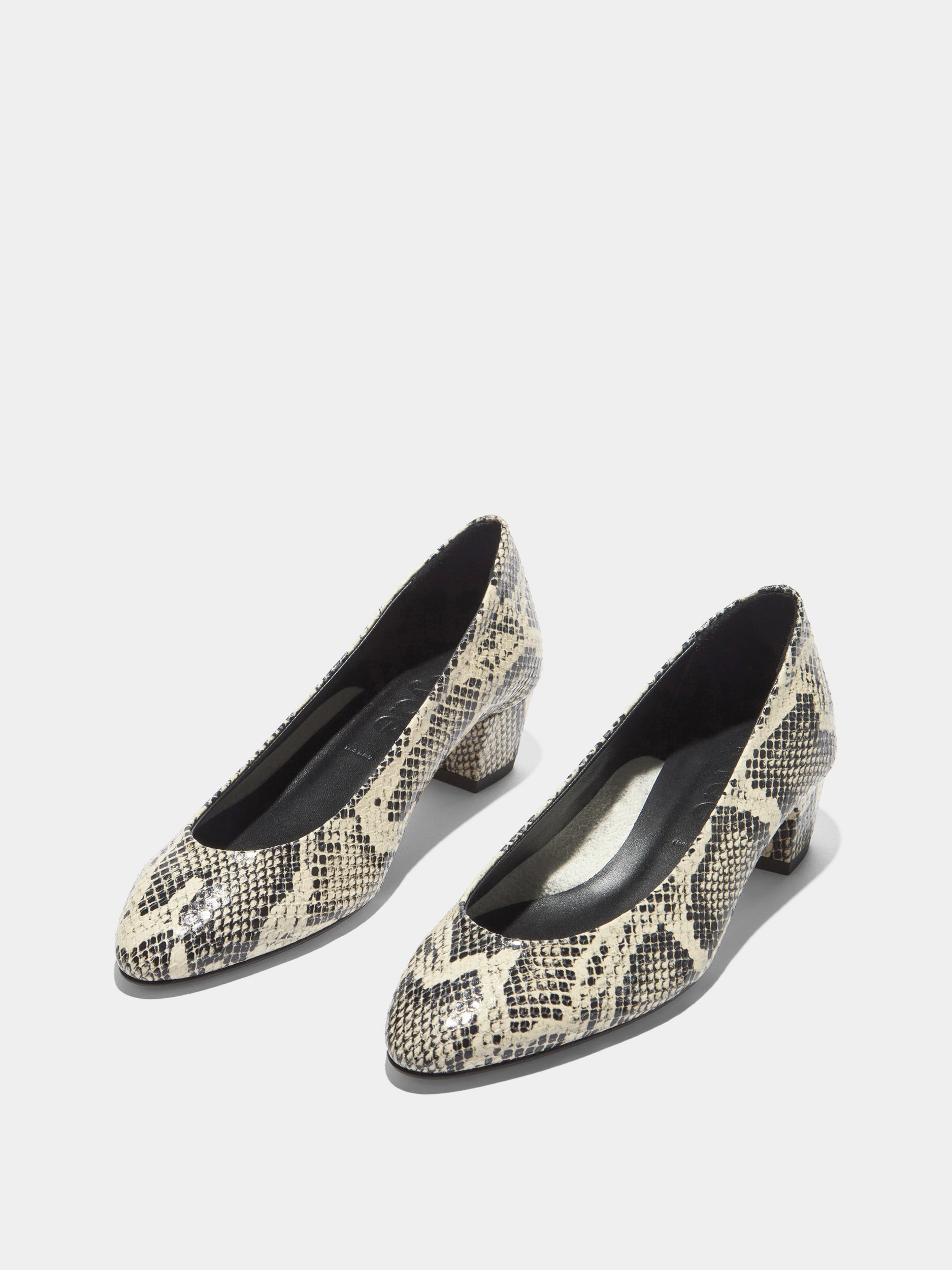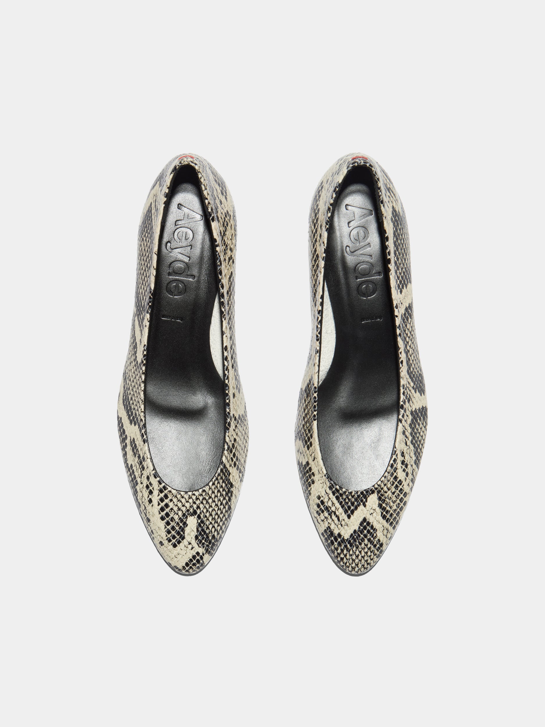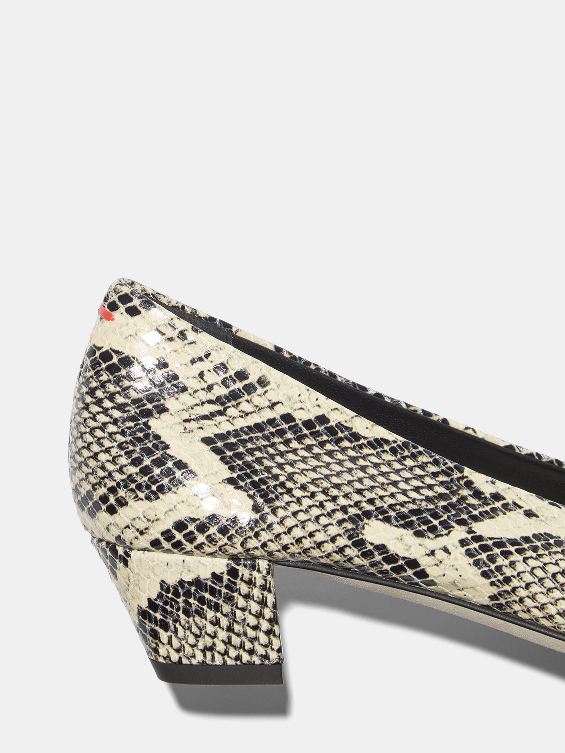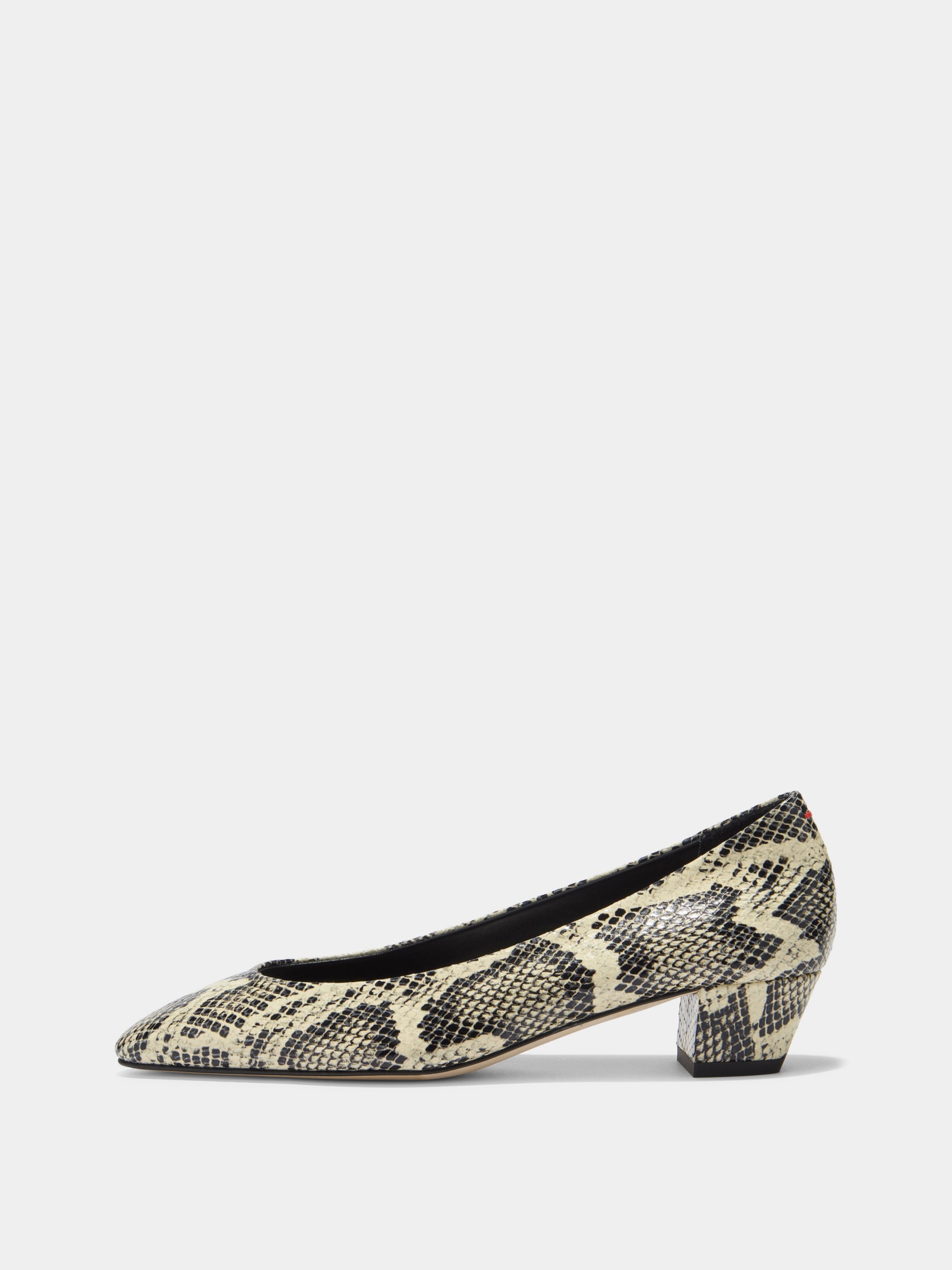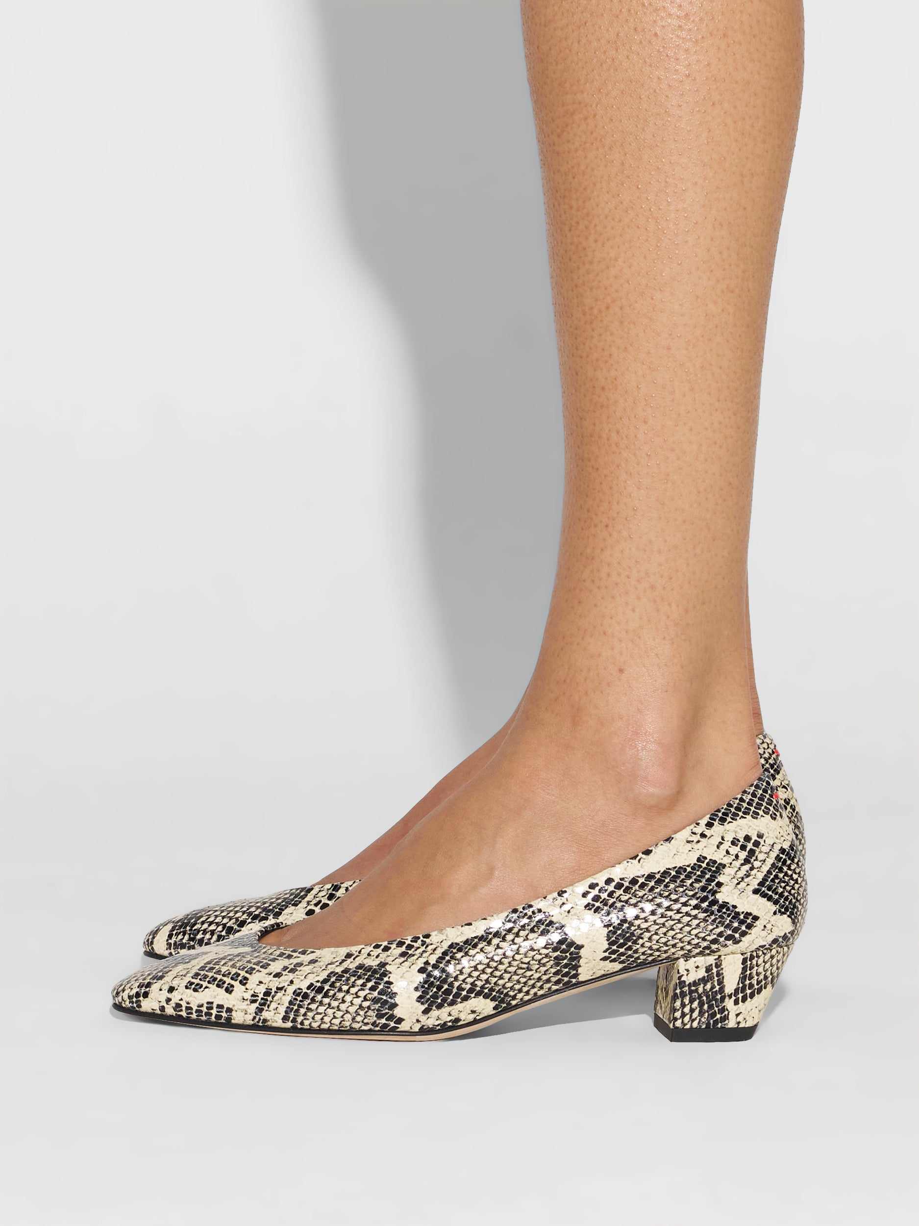 Inside Material: 100% Cross Breed Lamb Leather Outside Material: 100% Snake Print On Calf Leather Heel Height: 3.5 CM