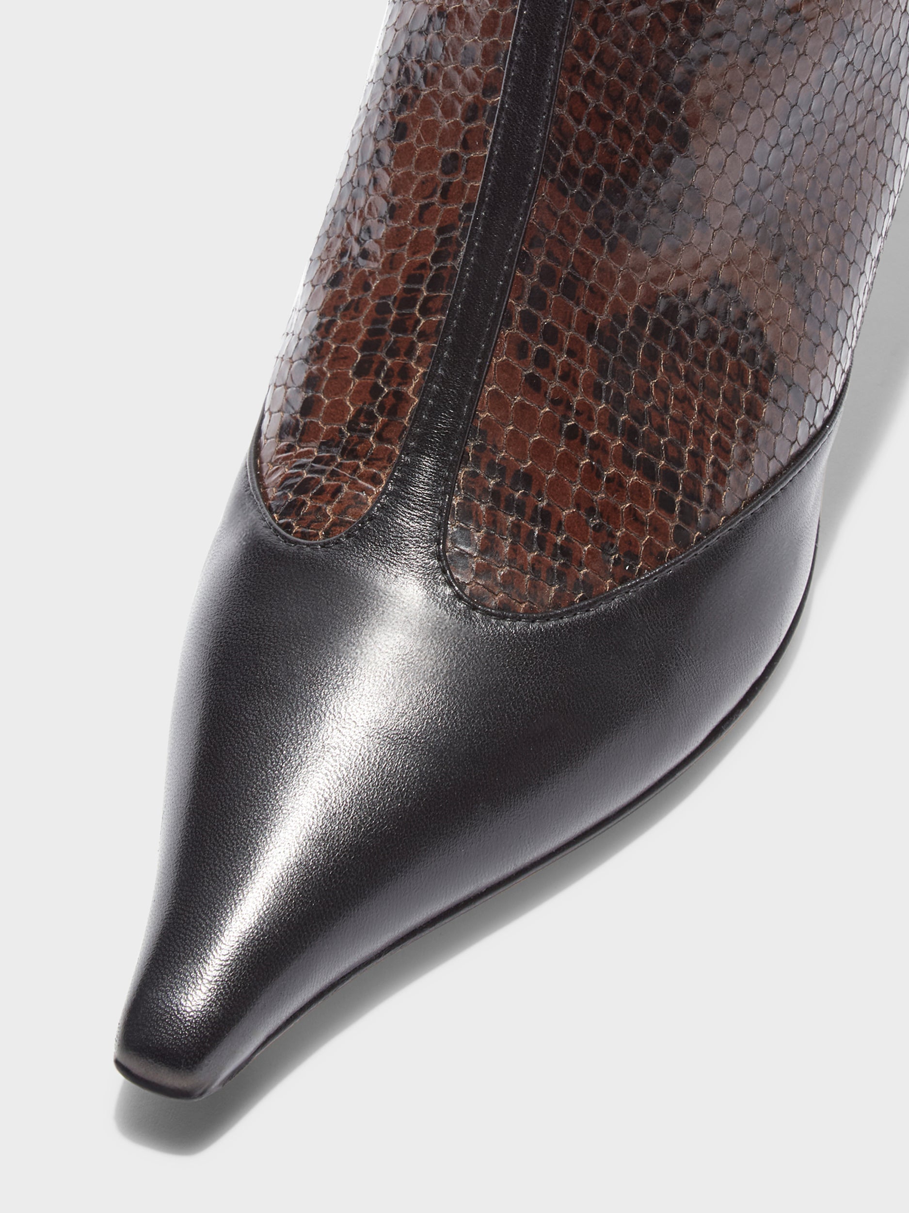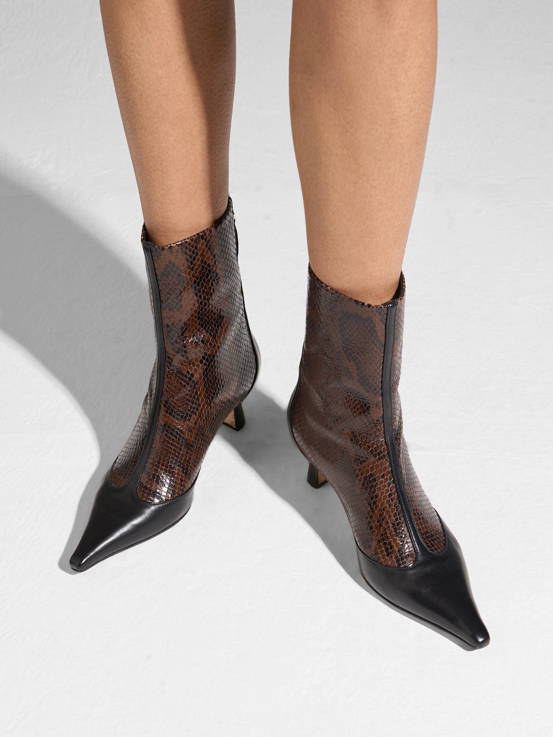 Inside Material: 100% Cross Breed Lamb Leather Outside Material: 80% Snake Print On Calf Leather / 20% Nappa Leather Heel Height: 3.5 CMCalf Circumference: 26.5 CMShaft Height: 18 CM