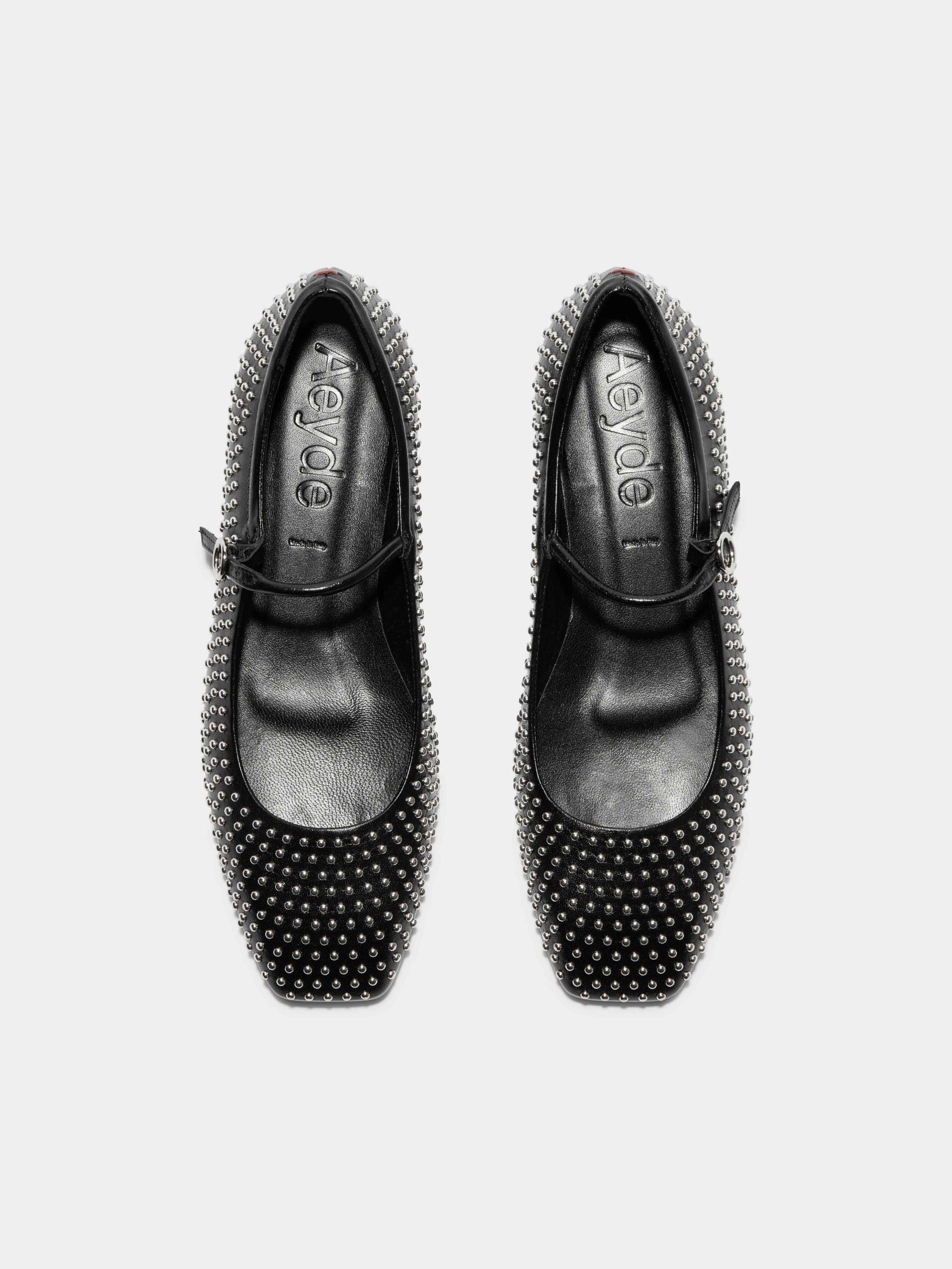 Inside Material: 100% Cross Breed Lamb Leather Outside Material: 100% Nappa Leather/Metal Studs Heel Height: 0.8 CM